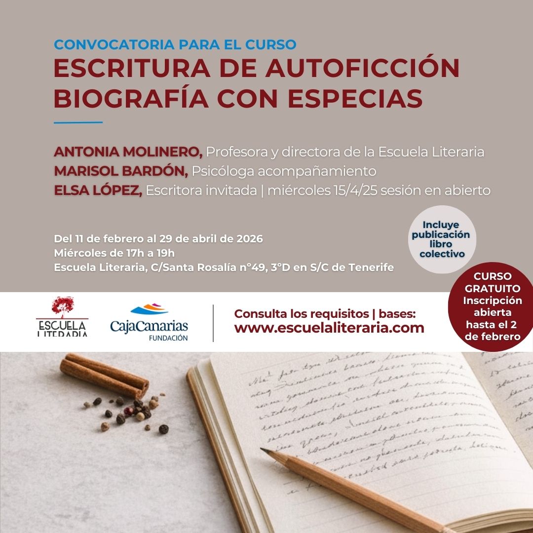Solicita tu plaza: https://www.escuelaliteraria.com/producto/curso-de-escritura-de-autoficcion-2026/