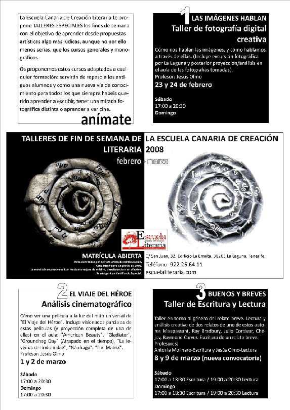 Premio: Un curso Monográfico de Invierno a elegir entre Teatro, Poesía, Relato, Redacción y Estilo, Oratoria y Curso a Distancia.